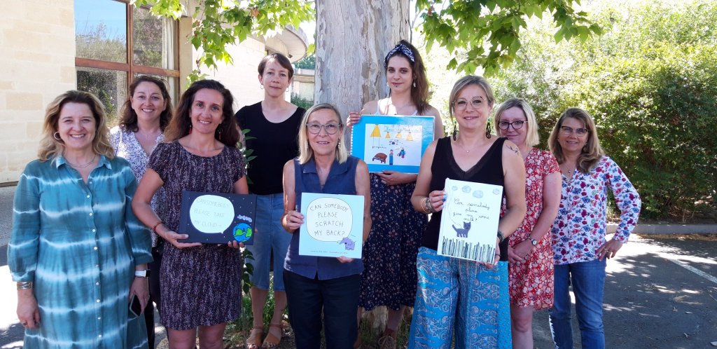 In keeping with our June theme of positivity, what a positive day I (Gail) had yesterday as one of the judges for the competition, Autour d’un album (Around a picturebook), in the Hérault department in the South of France. This competition targets children from five to 11/12 years old who are learning a foreign language and is the initiative of Anne Igual, Head of the Centre Ressources Point Langues and Languages Adviser for the Département de l’Hérault. It has been running since 2012 but was cancelled in 2020 and 2021 due to the pandemic so it’s great that it has got off the ground again. The objective of the competition is for a class to create their own version of a picturebook ‘in the style of’ the original.