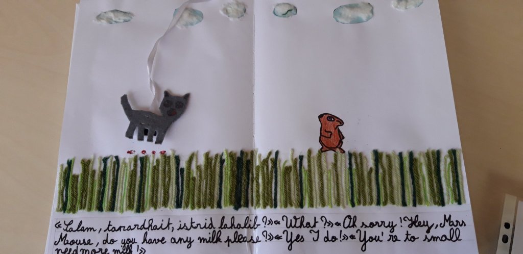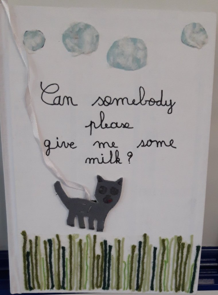 There were many creative and imaginative versions of ‘Can Somebody Please Scratch My Back?’ covering different themes from the environment, ‘Can Somebody Please Free My Fin?’ and ‘Can Somebody Please Take My Cloud?’, to disability, ‘The Elevator’. ‘Can Somebody Please Give Me Some Milk?’ features a cat who finds harissa in his milk and each time he asks an animal the question, ‘Do you have any milk please’, the question is asked in one of the languages spoken by the teacher and children of the class. This multilingual version includes English, French, Spanish, Dutch, Berber, Riffian, and Classical Arabic.