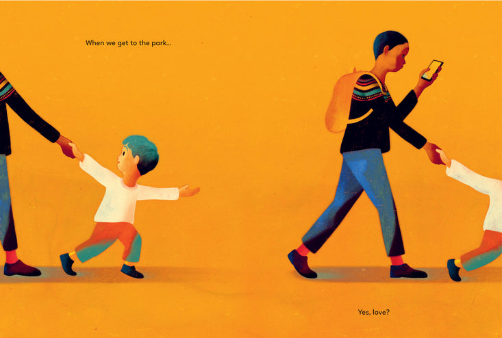In a nutshell, ‘That’s Nice Love’ is a story for children and adults alike about the importance of looking up, paying attention, witnessing creativity, and sharing life. It is a reminder that life does not take place on our mobile phones and that, especially children but also our friends and family, need us to exit our digital worlds and to not merely share a physical space.