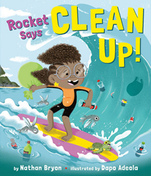 Welcome to April and our picturebook of the month Clean Up! written by Nathan Bryon and illustrated by Dapo Adeola. We think Clean Up! (published in 2020 by Puffin books) is a great choice to celebrate this year’s Earth Day (22.04.2021). Clean Up! is the sequel to Bryon and Dapo’s debut picturebook Look Up! and both books feature Rocket, a science-loving girl. This time Rocket in on holiday and she’s shocked by the pollution that is spoiling her grandparents’ island home and putting the local sea life at risk. Can she help?